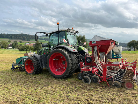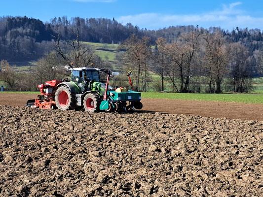 Auf gepflügte oder ungepflügte Parzellen (dann mit Frontgrubber).