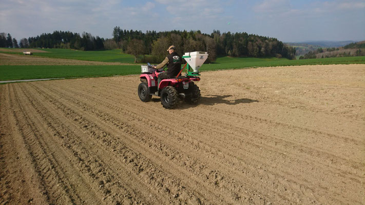 Sehr bodenschonende Variante um in Neuansaaten die Schneckenkörner zu streuen.